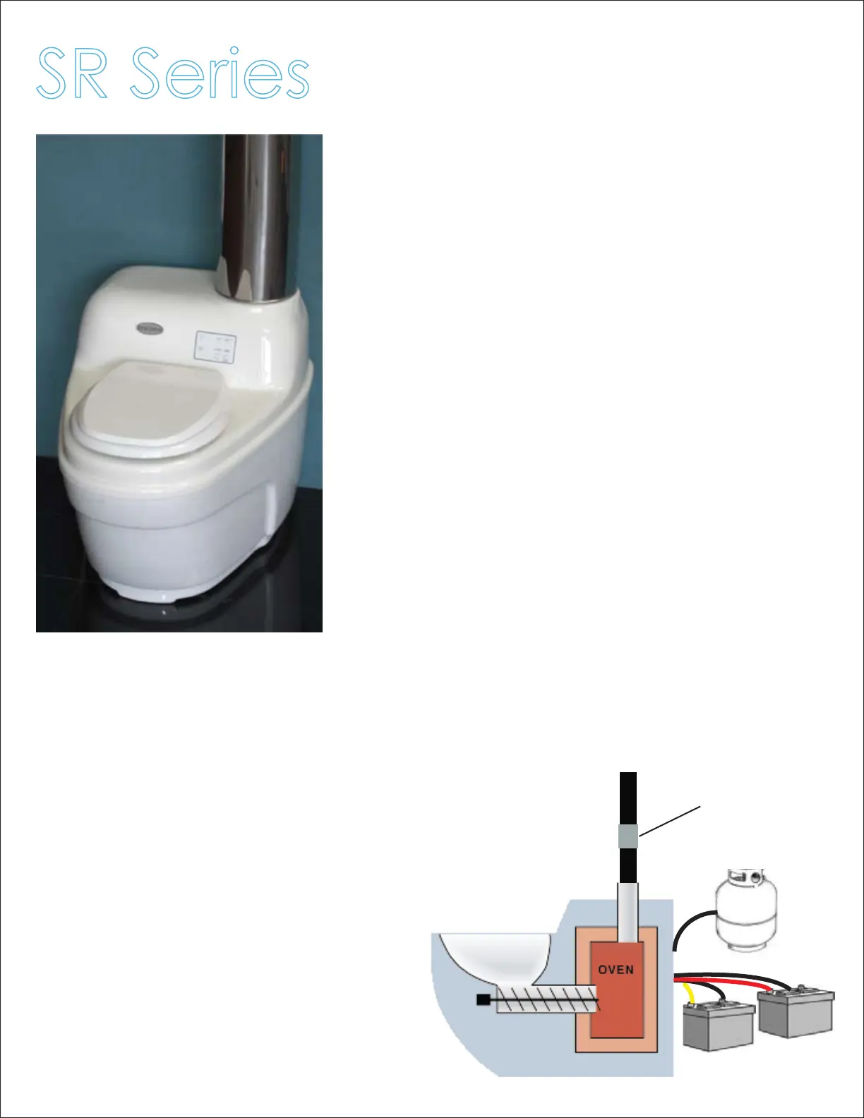 12V DC as its power source, which can be recharged by solar energy. To operate the toilet after