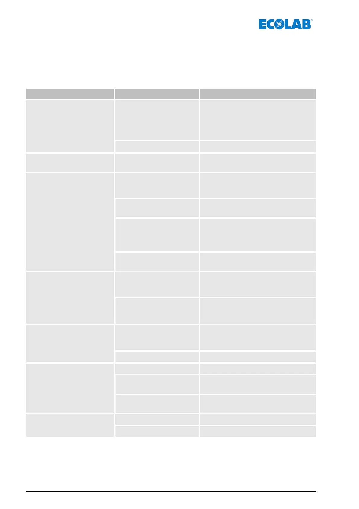 Fault description Cause Remedy