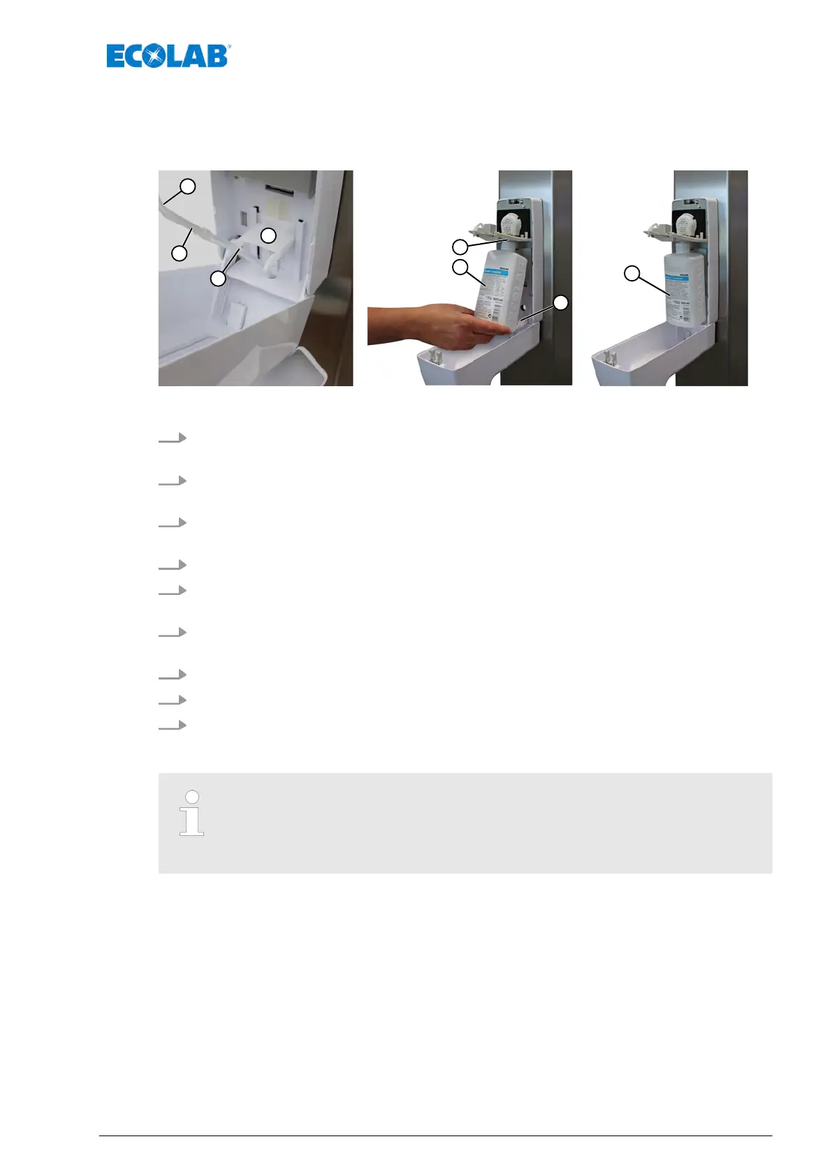 To reactivate the dispenser with the 5 or 20 l disinfection container,