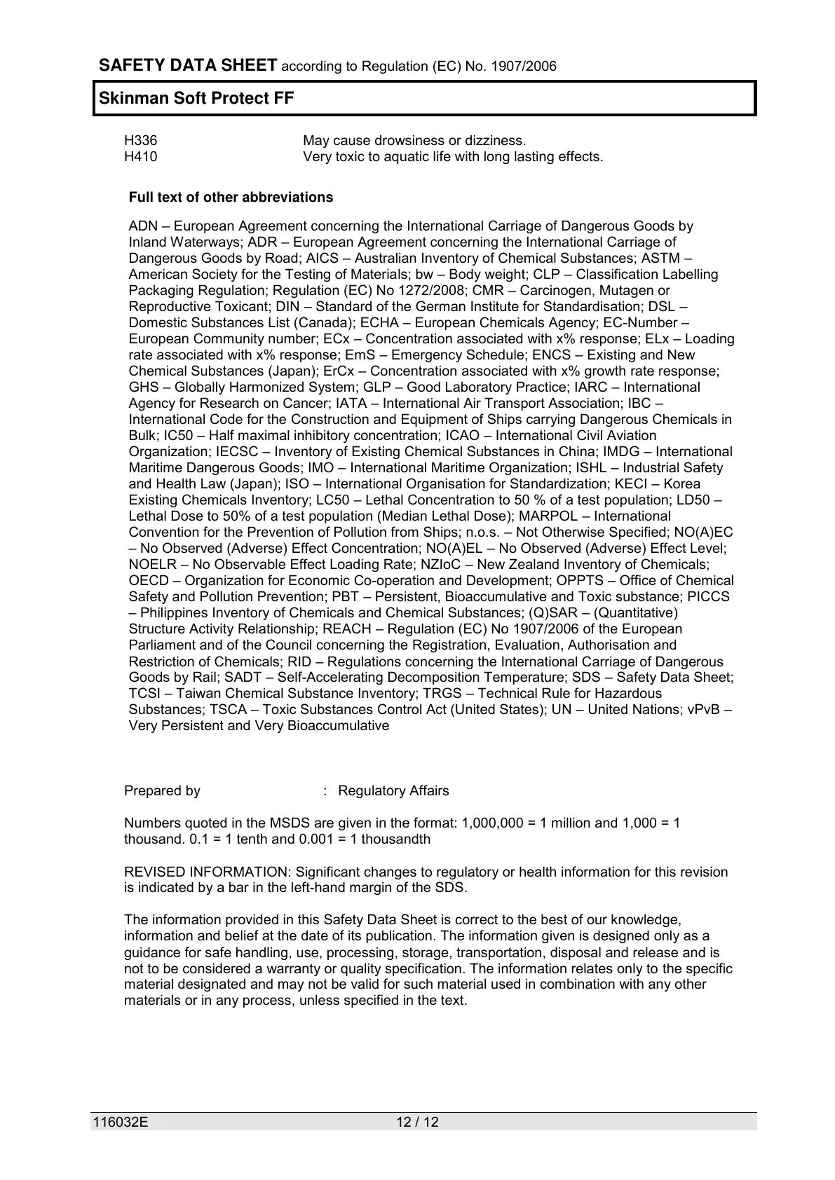 Numbers quoted in the MSDS are given in the format: 1,000,000 = 1 million and 1,000 = 1