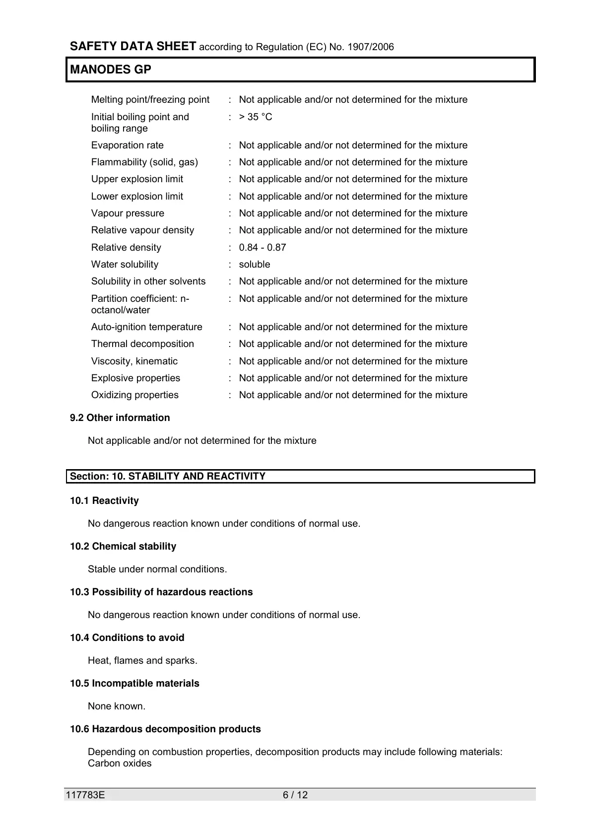 Section: 10. STABILITY AND REACTIVITY