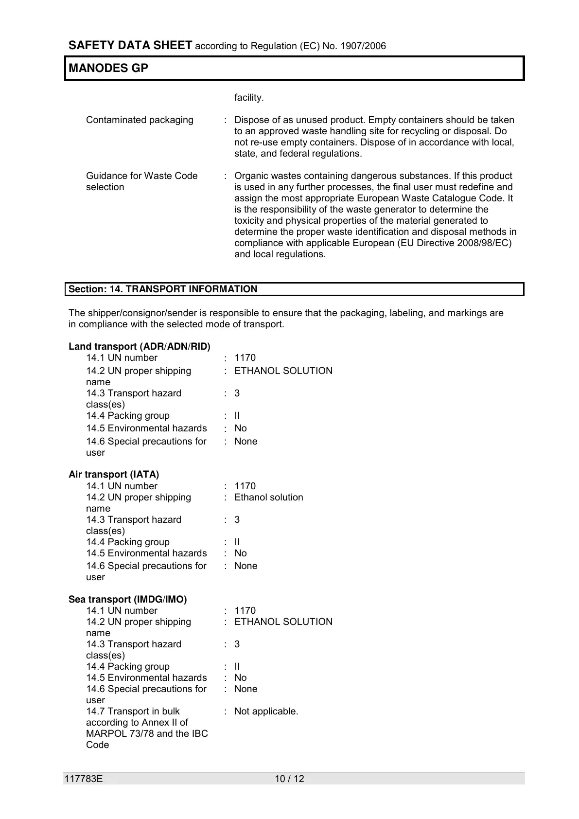 Section: 14. TRANSPORT INFORMATION