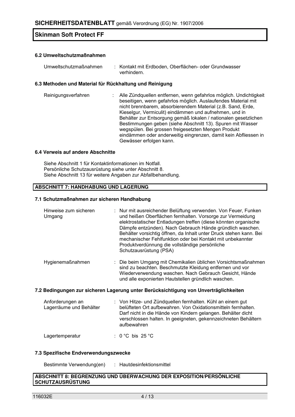 ABSCHNITT 7: HANDHABUNG UND LAGERUNG