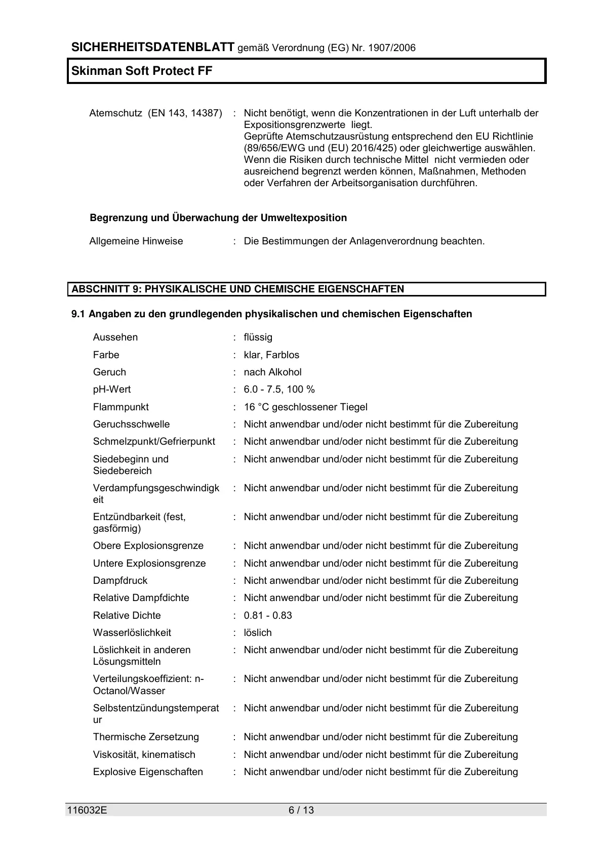 ABSCHNITT 9: PHYSIKALISCHE UND CHEMISCHE EIGENSCHAFTEN