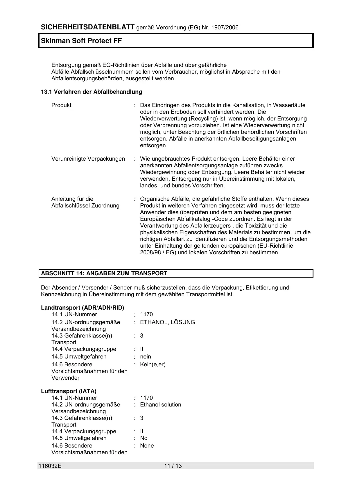 ABSCHNITT 14: ANGABEN ZUM TRANSPORT