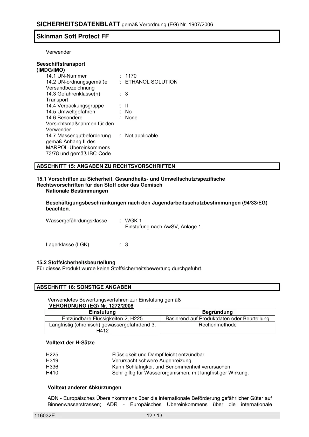 ABSCHNITT 16: SONSTIGE ANGABEN
