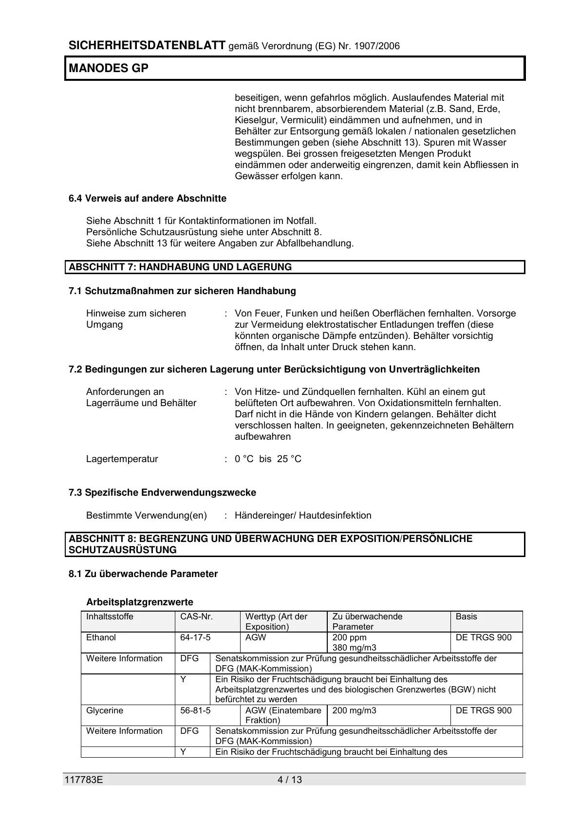 ABSCHNITT 7: HANDHABUNG UND LAGERUNG