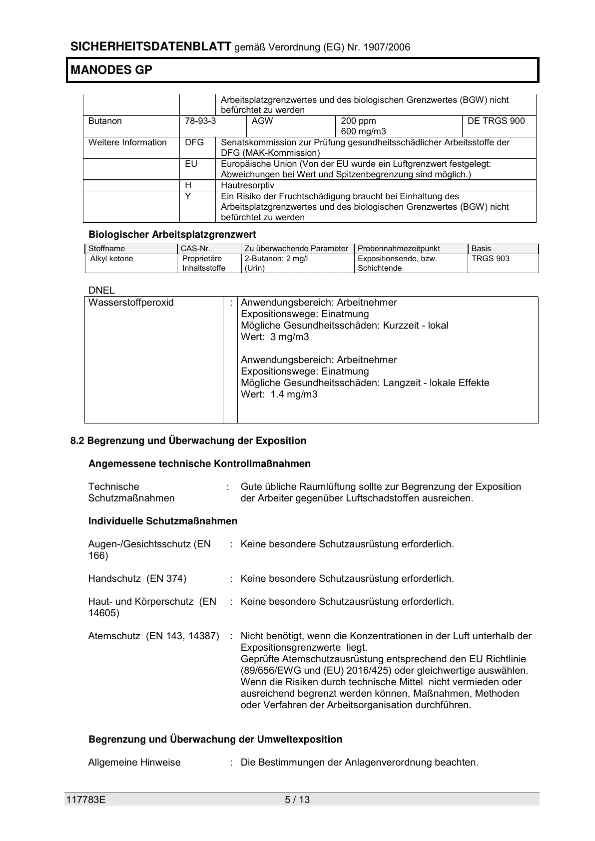 Arbeitsplatzgrenzwertes und des biologischen Grenzwertes (BGW) nicht
