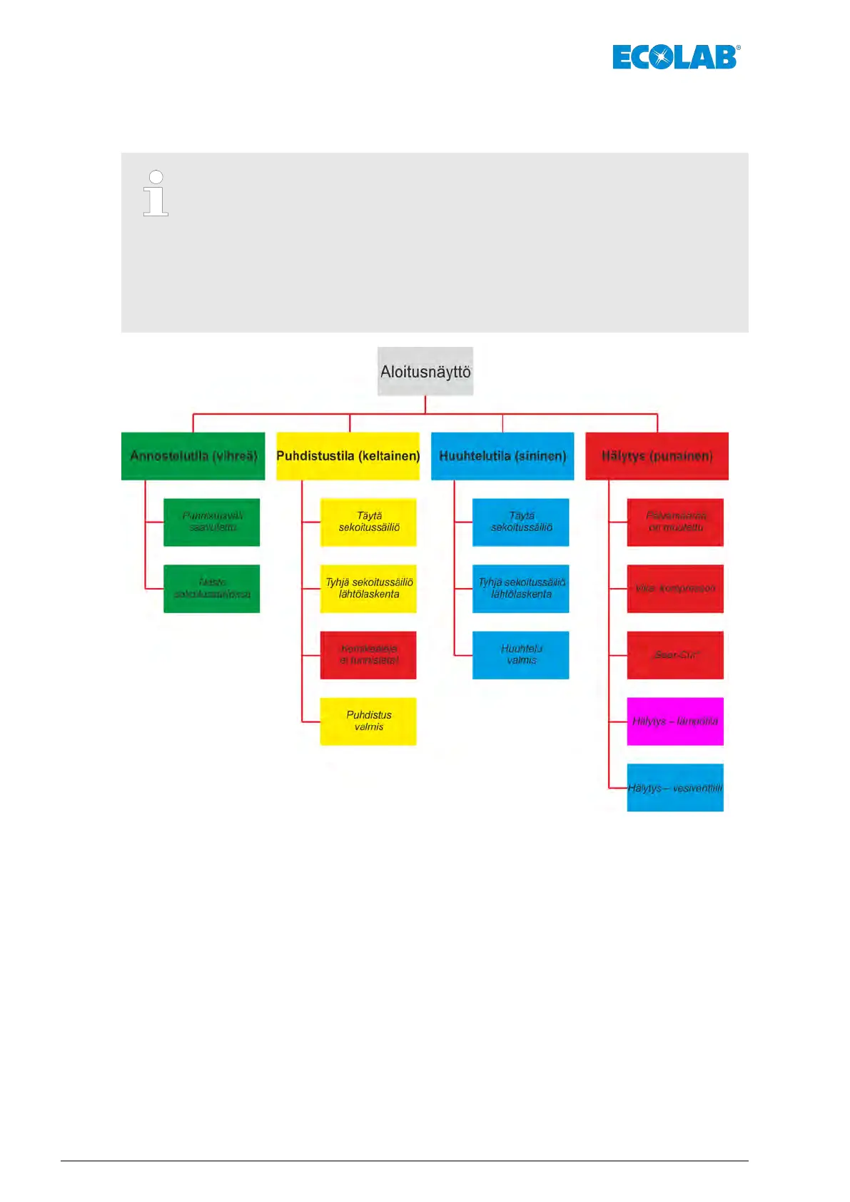 Tällä tavalla käyttäjä tietää, missä käyttötilassa Cleaning Modul on, ja onko