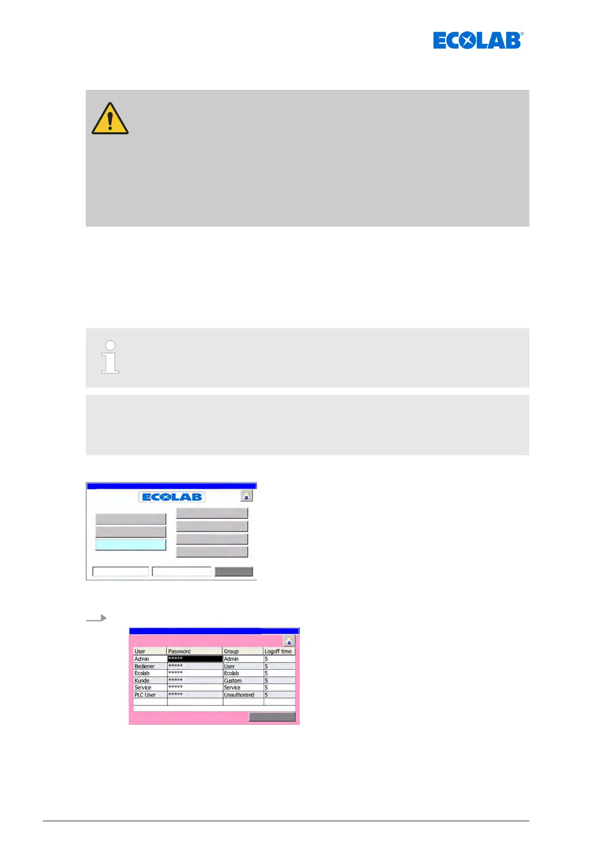 The following password levels (groups) can be assigned in the DryExx®-Advanced-ETH: