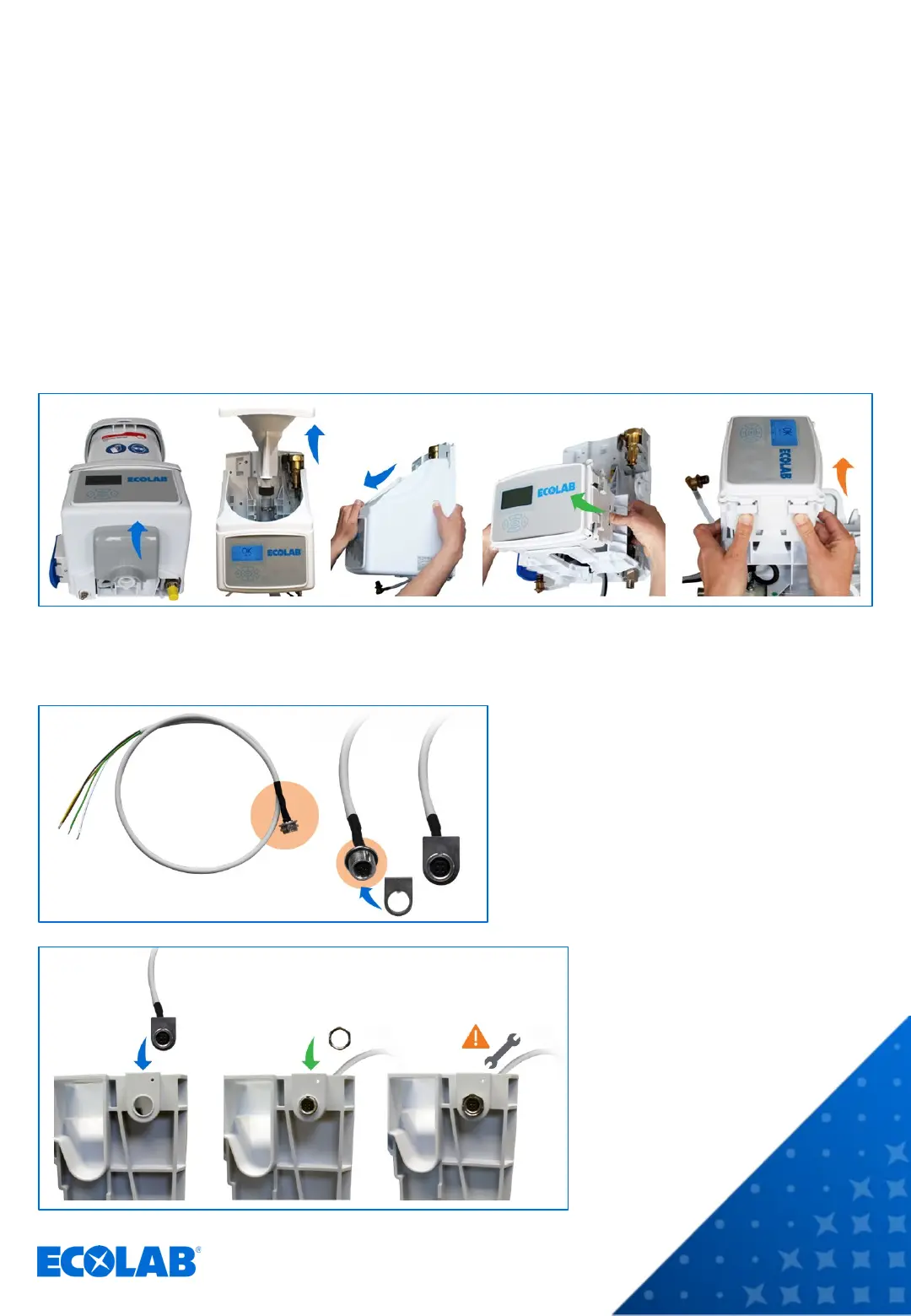 the device rear panel. | 5 Unlock the four tabs of the electronic unit cover and remove it.