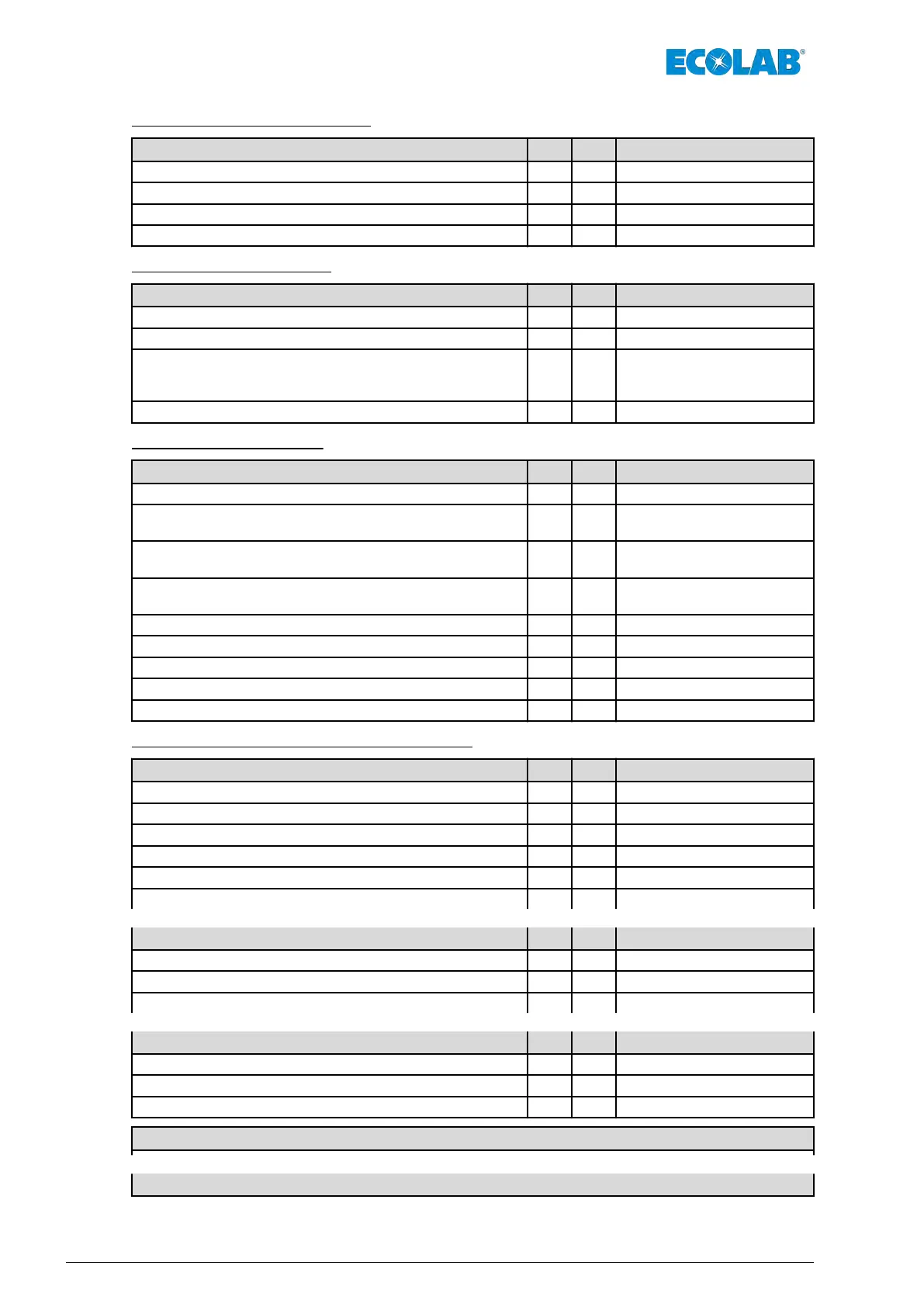 Checklist – Recurring Tests Yes No Comment