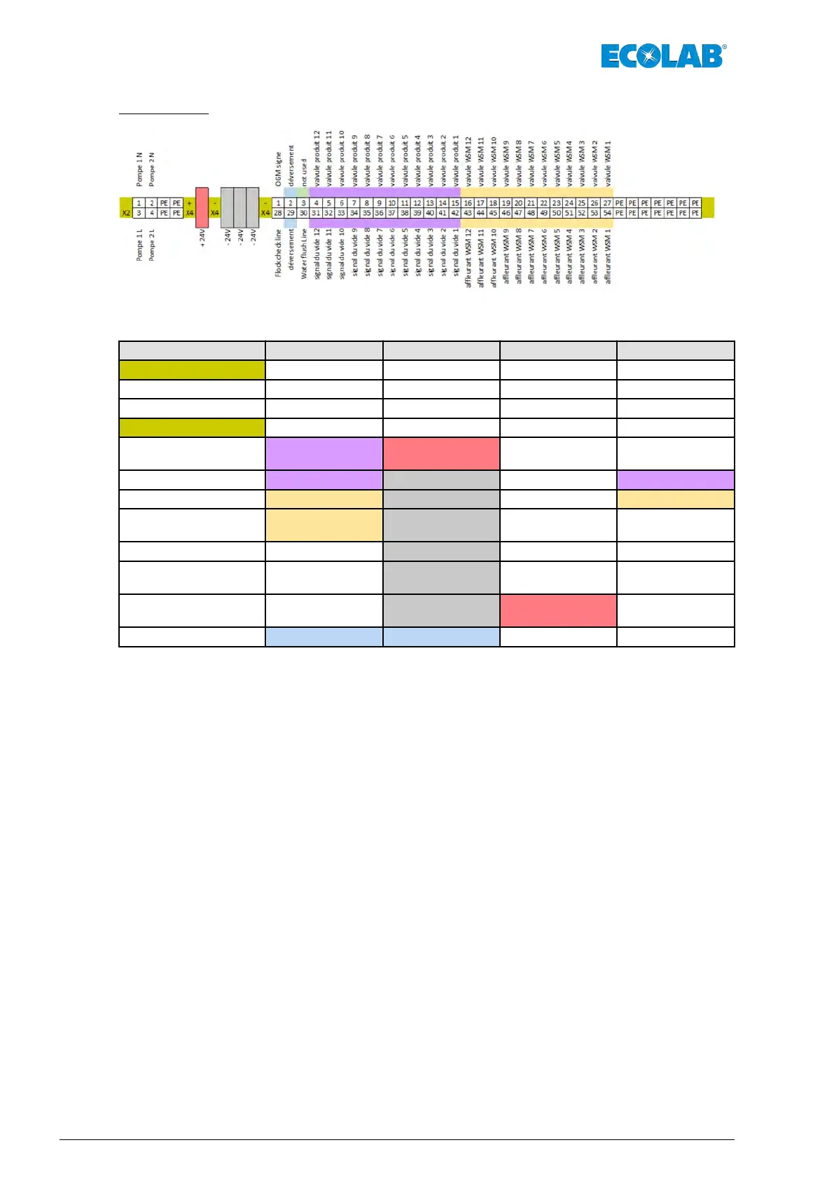 Bornes 54 à 43 X4 -24 V PE
