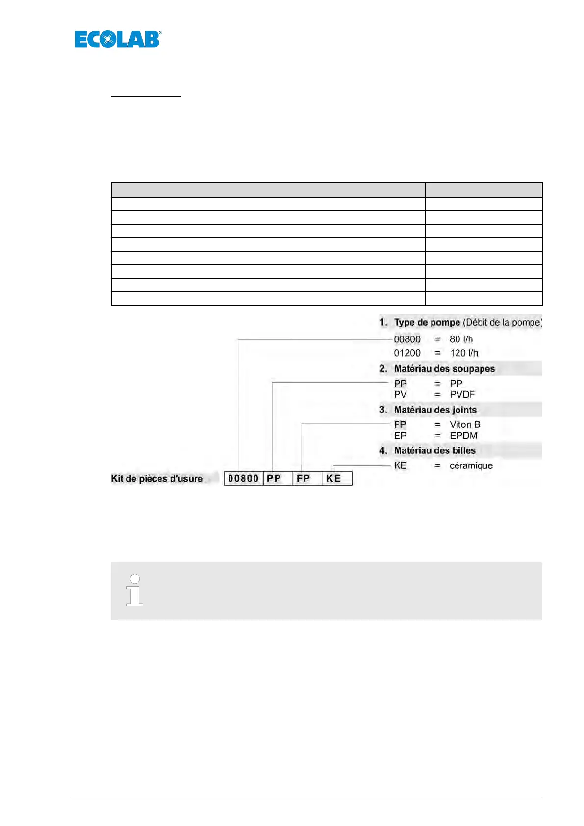 11.5 Pièces de rechange et d’usure pour pompe doseuse TCD Turbo Pump