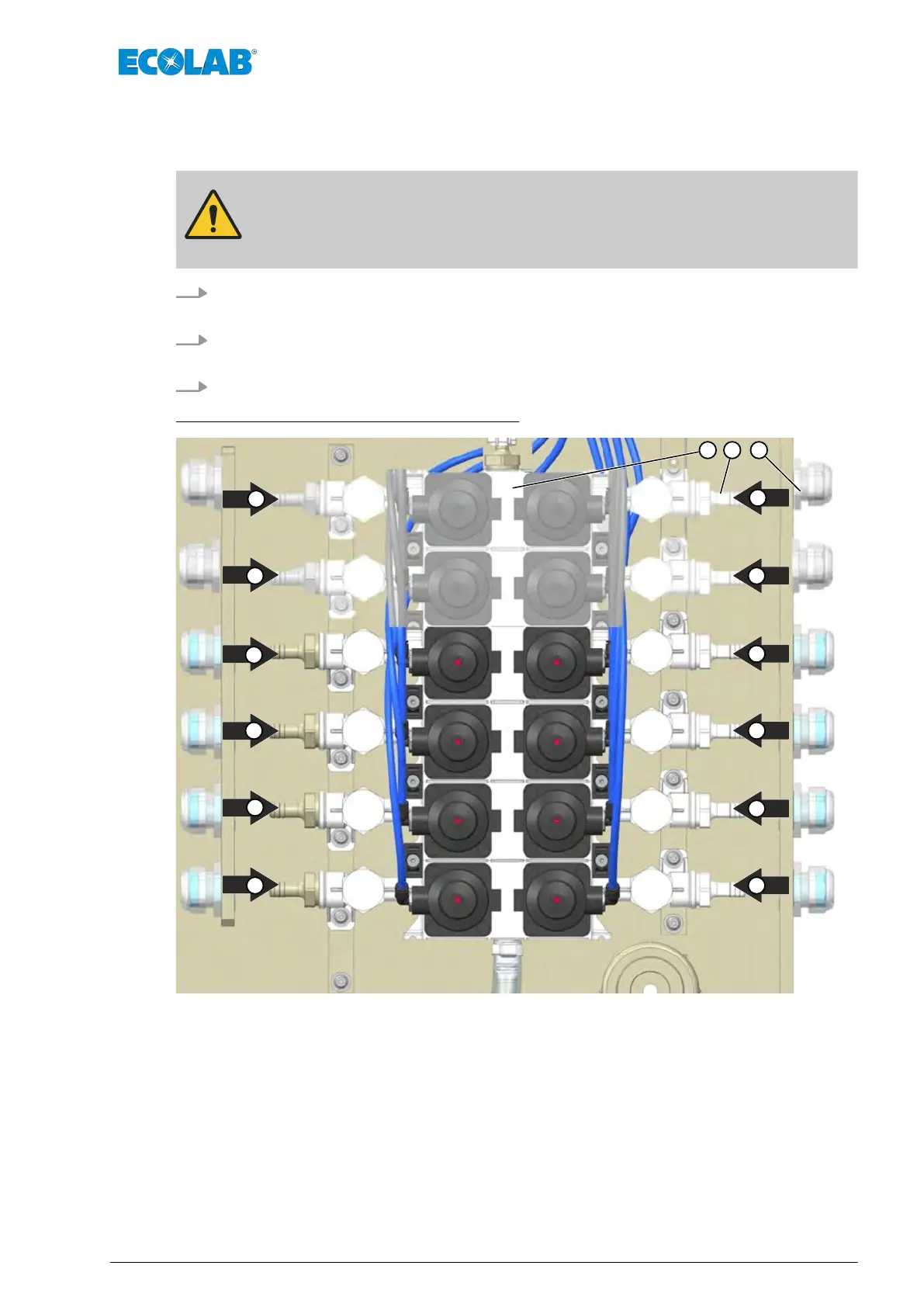 2. Anslut slangarna till den respektive slangnippeln ( Bild 6 , pos. B) av ventilblocket
