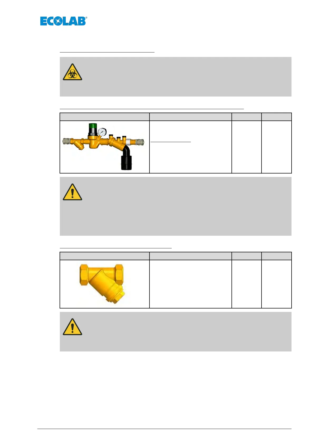 behov. Det måste säkerställas att en bakflödesregulator och smutsfångare