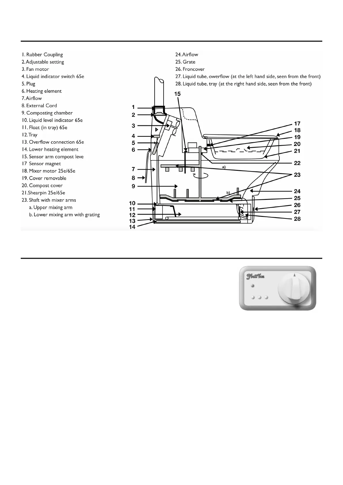 Set the heat according to load, read the level tube (#28) on the right side (seen from the front).