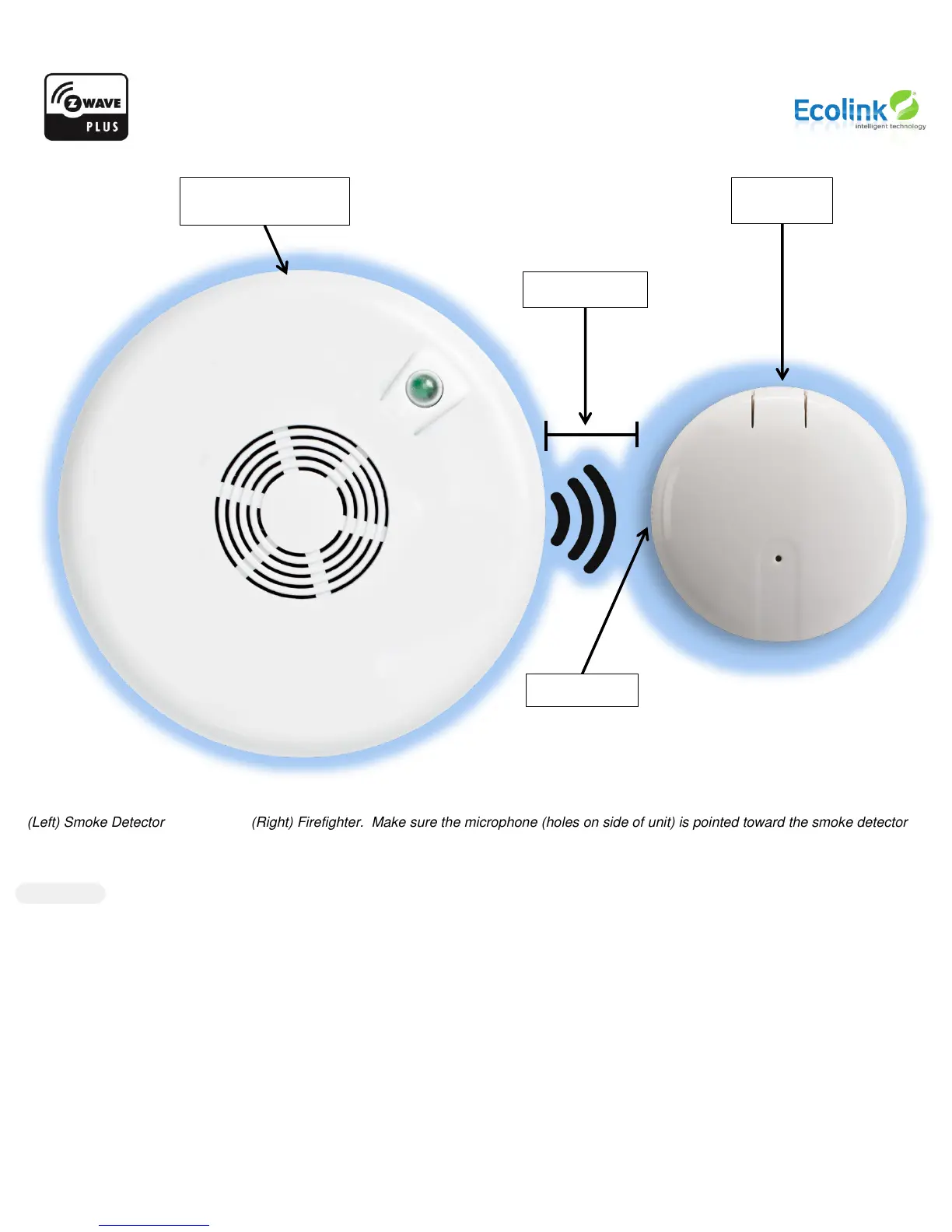 (Left) Smoke Detector (Right) Firefighter. Make sure the microphone (holes on side of unit) is pointed toward the smoke detector