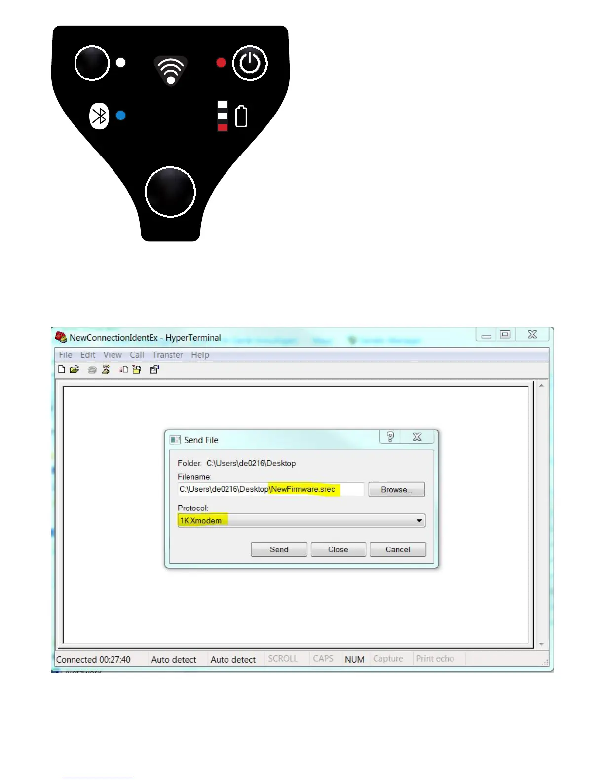 Send File. Now select the le via Browse. The protocol 1K XModem has to be