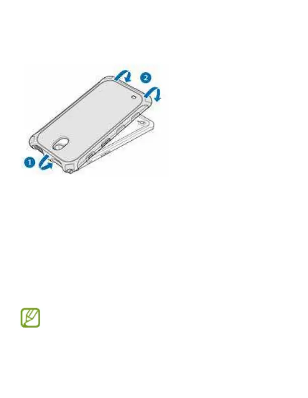 Per rimuovere la custodia protettiva dal dispositivo, gira il bordo superiore della