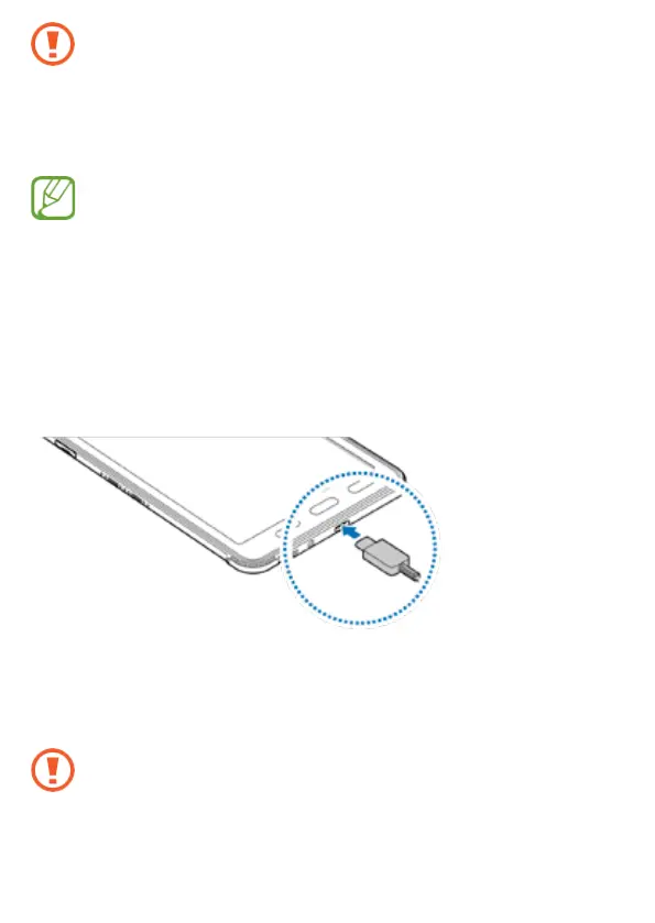 • Il collegamento improprio del caricabatterie può causare gravi danni al dispositivo.