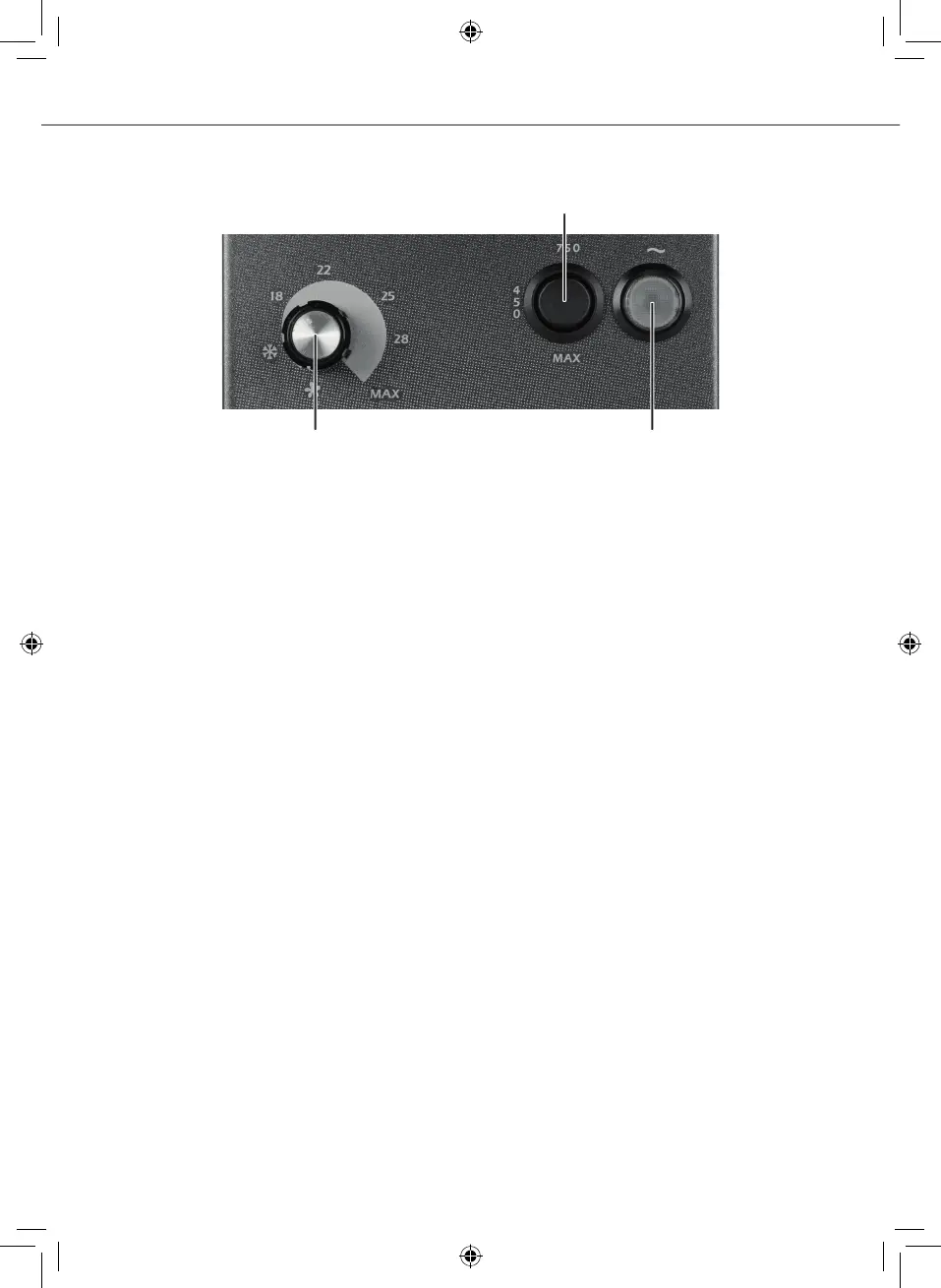 2) Power rocker switch with pos. 450 W / 750 W / MAX