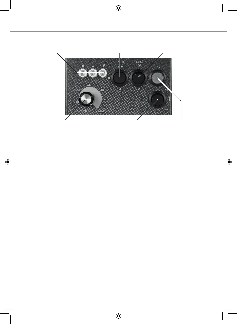 4) PLUS rocker switch6) Control lights 5) LEISE (silent) rocker switch