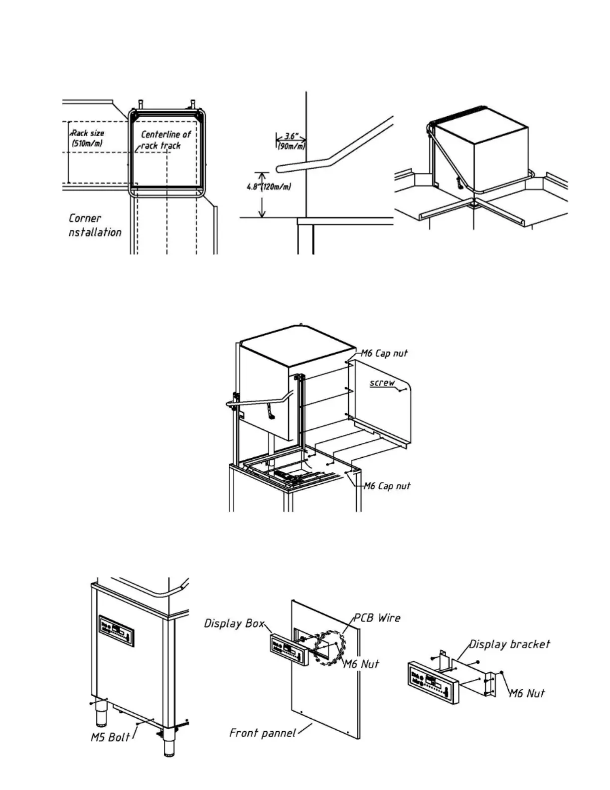 the control on under the table. Display bracket should be located 10” (250mm) away from the