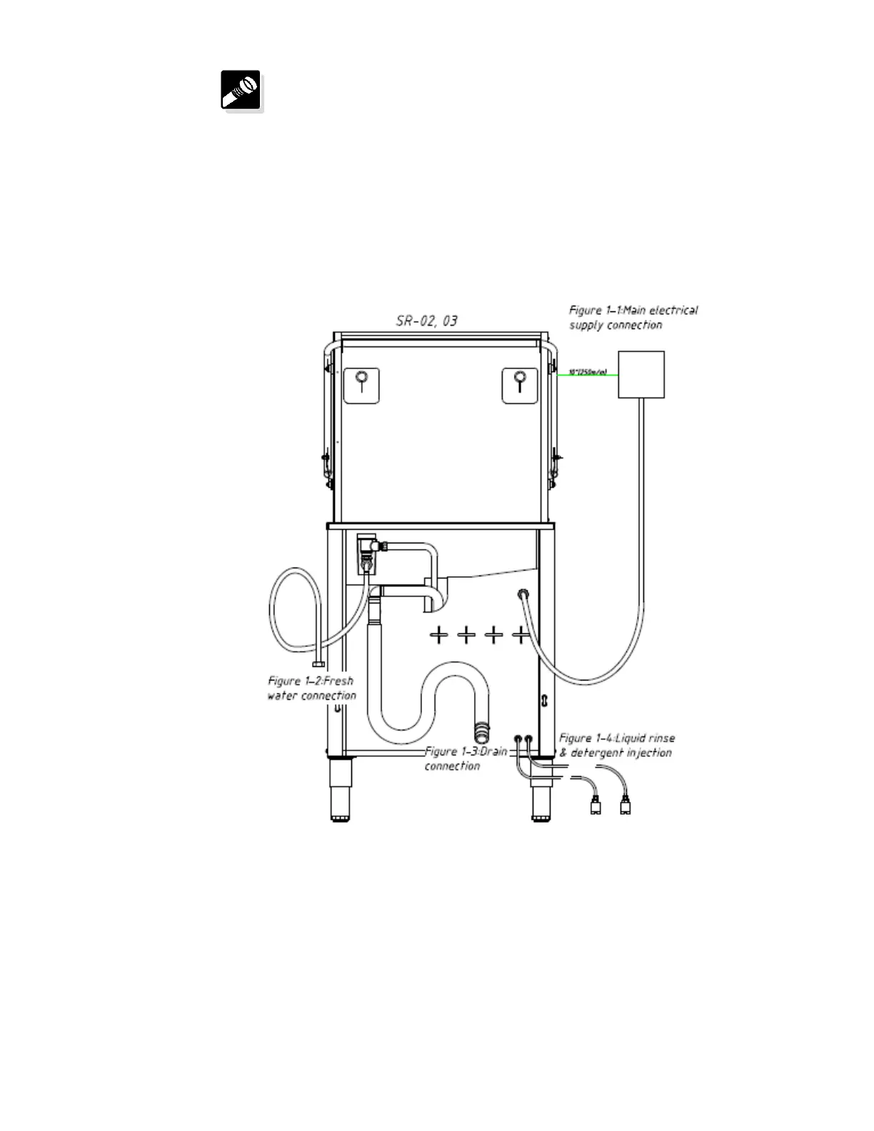 and plumbing connections. If a commercial dishwasher is being installed in this area for the first time,