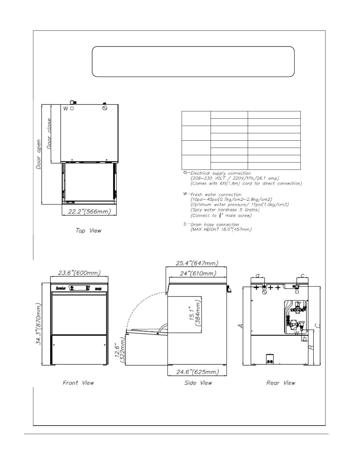25.4" (647 mm)