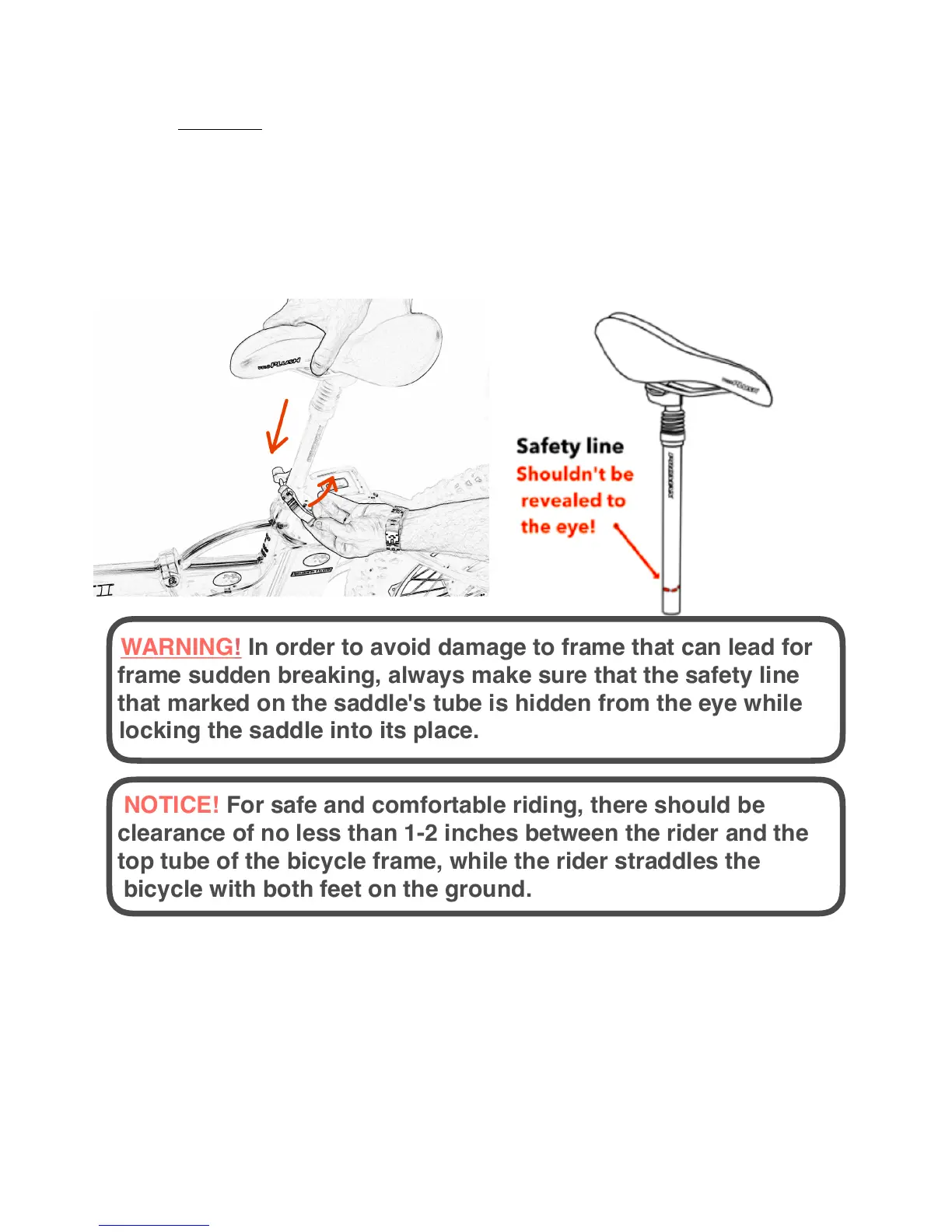NOTICE! For safe and comfortable riding, there should be