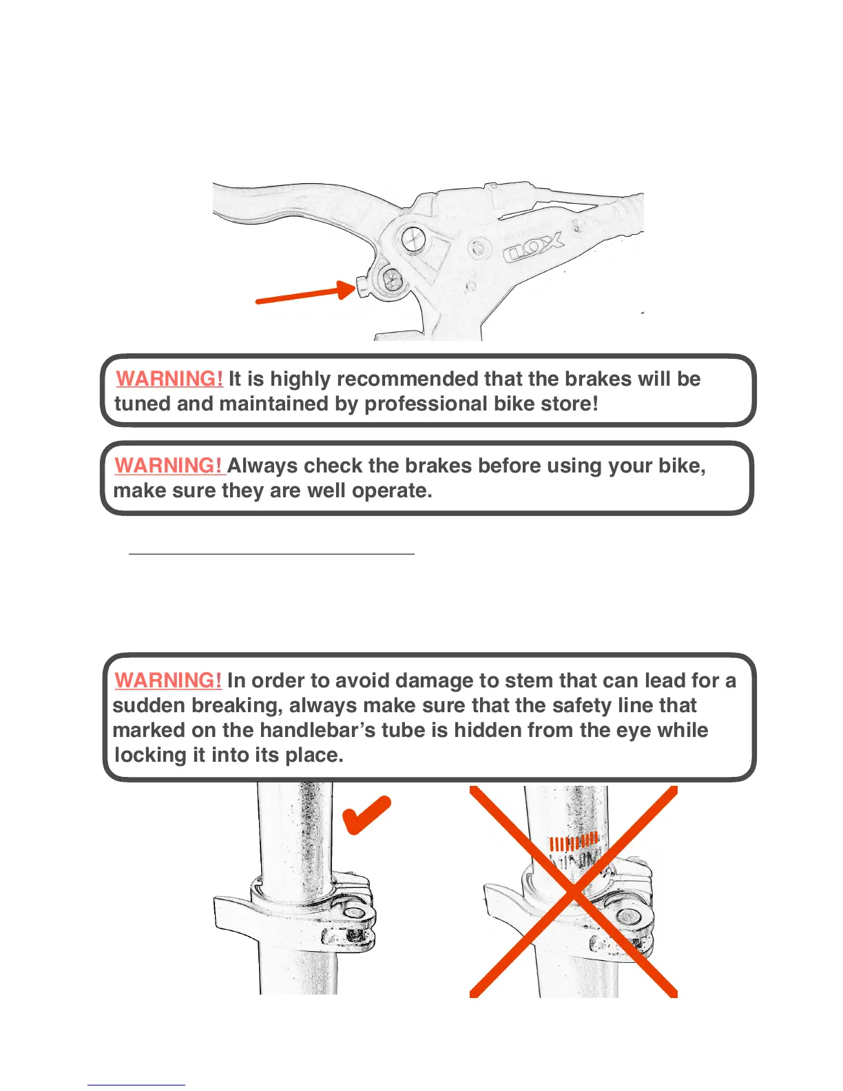 WARNING! Always check the brakes before using your bike,
