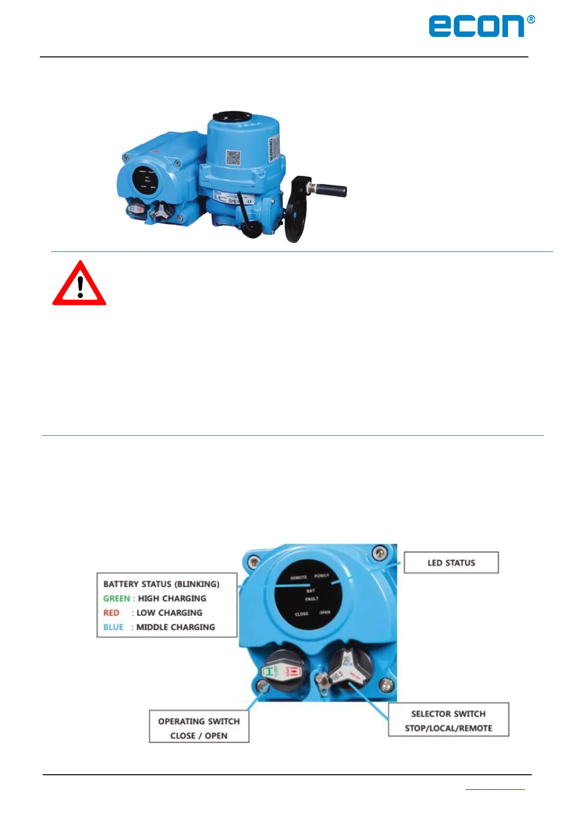 The ECON actuator with Rechargeable Battery Pack (RBP) can be operated in Local or
