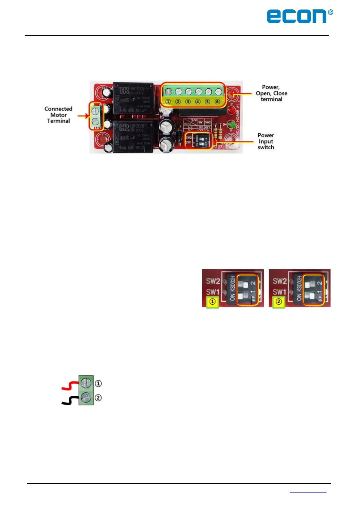 Note: Don’t operate both switches #1 and #2 at the same time. It may damage the board