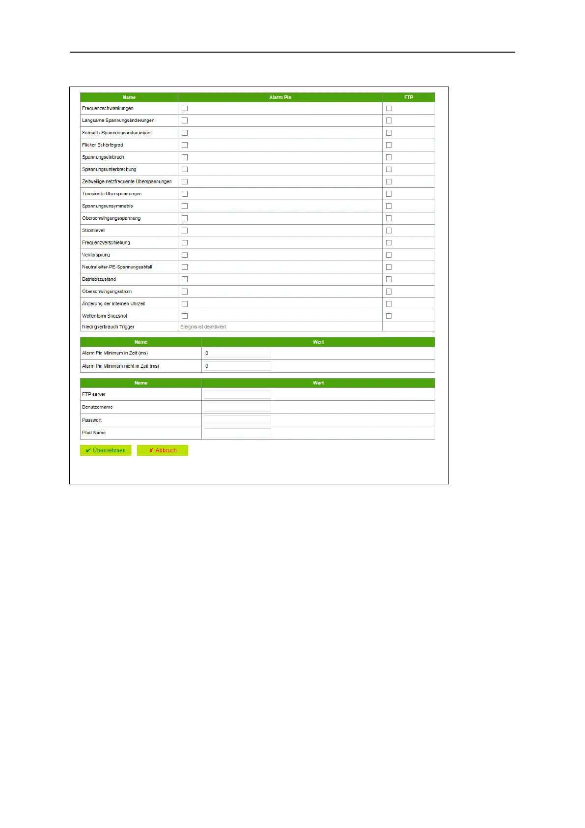 Figure 55: Alarms submenu