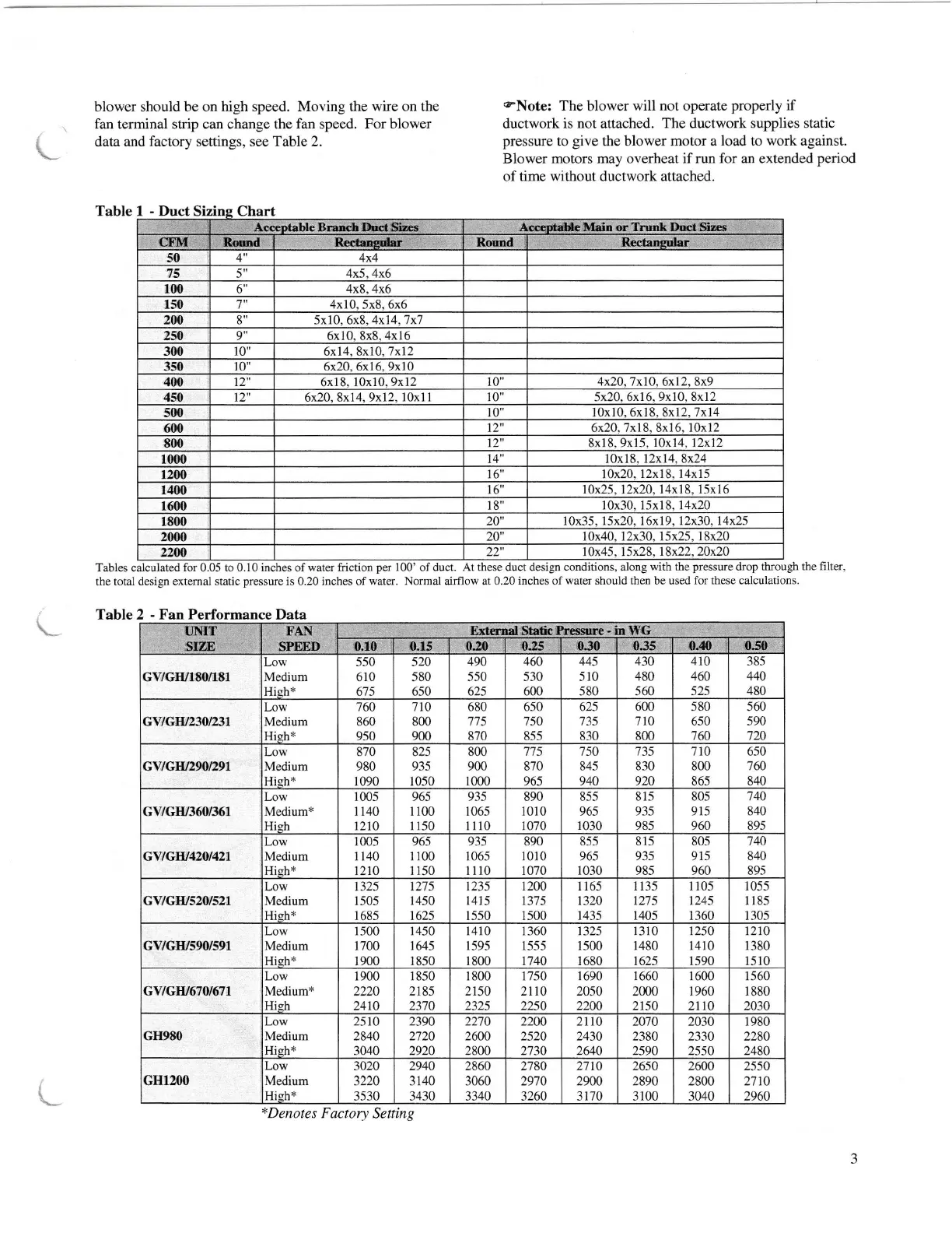 without ductwork attached.