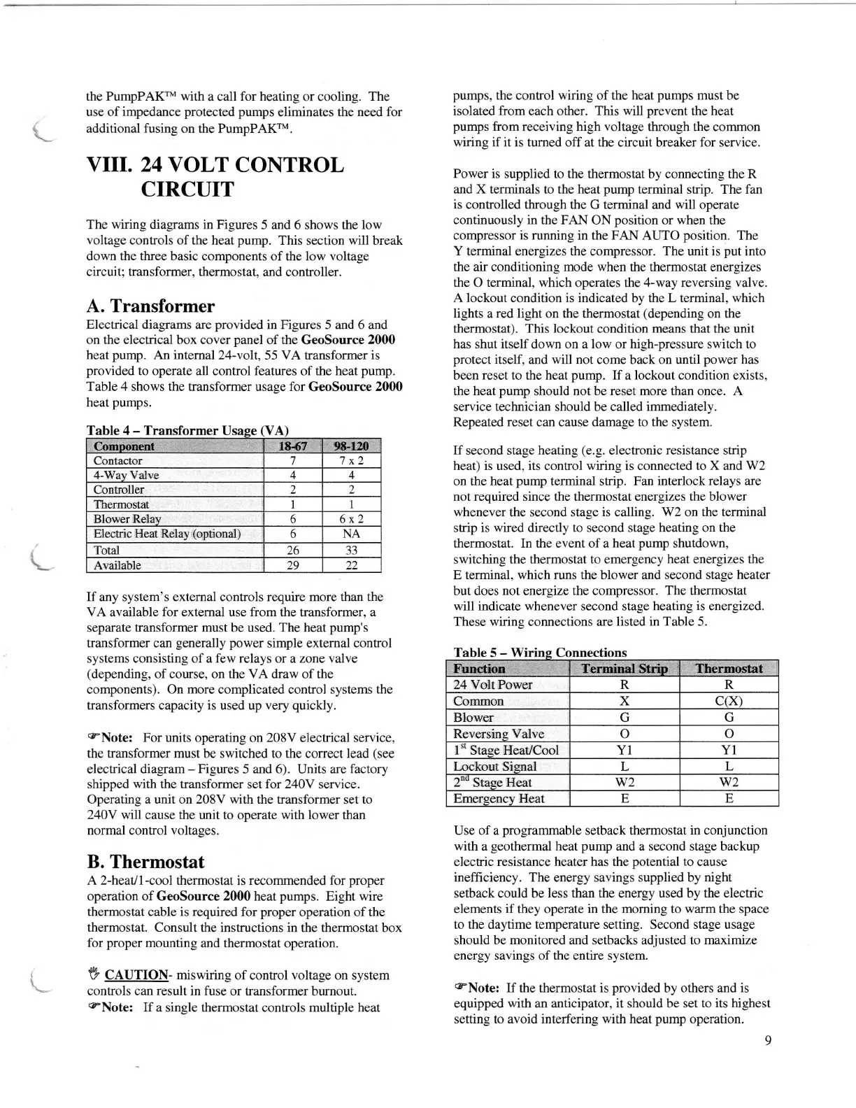 Econar GeoSource 2000 GV520 - VIII. 24 Volt Control Circuit; A. Transformer; B. Thermostat; C. Controller