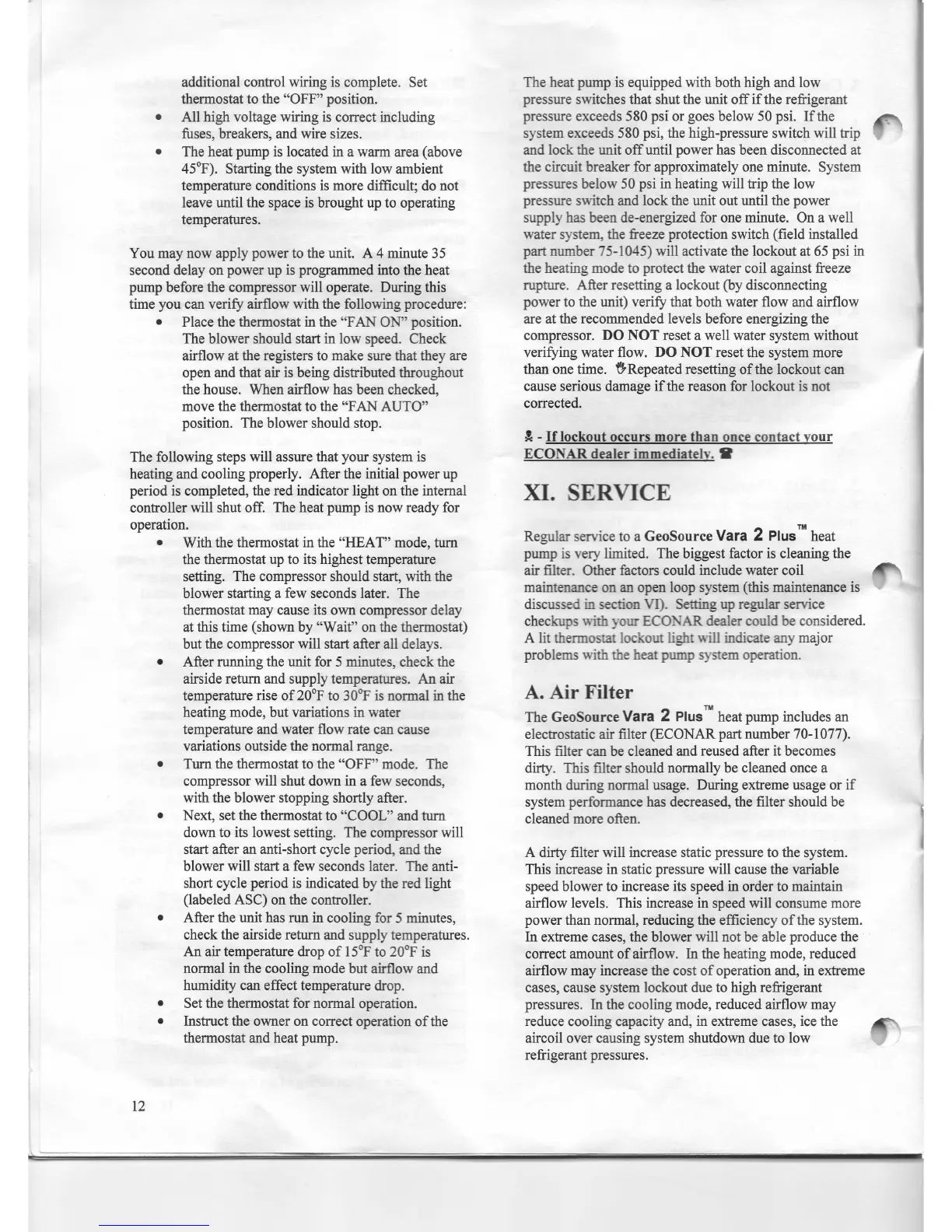 Econar GeoSource Vara 2 Plus - Unit Startup Procedure