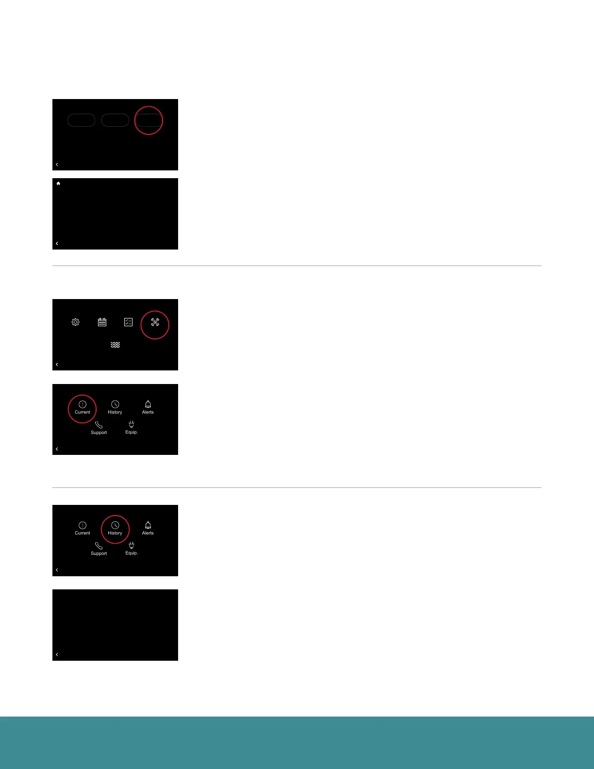 History (Historique) – Affiche la liste des quatre dernières alertes / alarmes