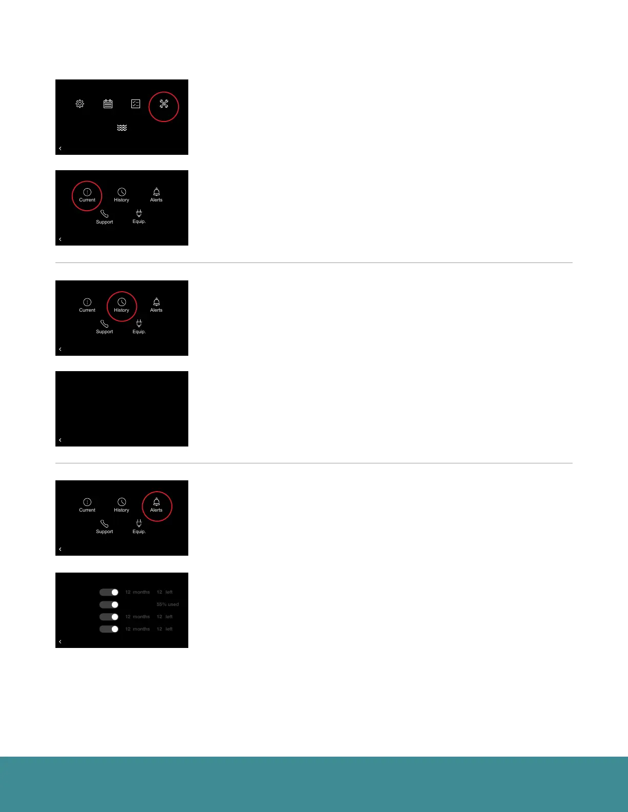 Current – Shows any alerts or alarms that are currently active. When an