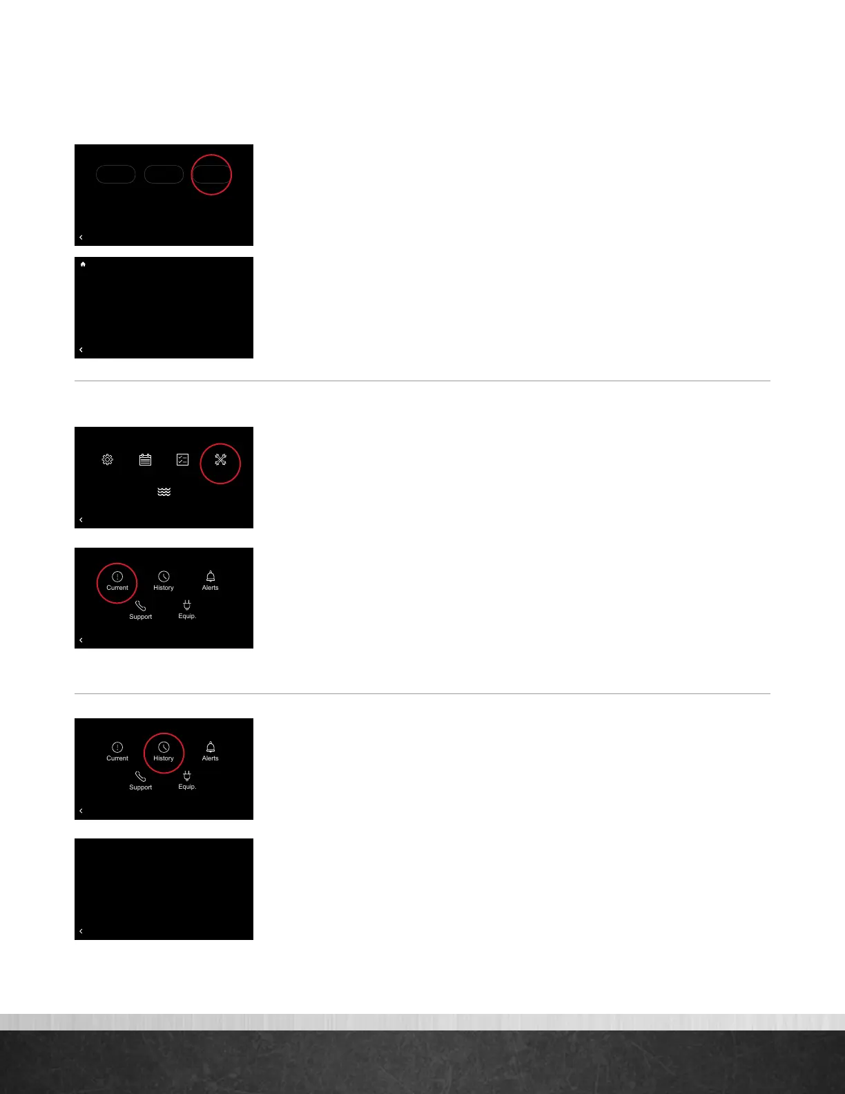 Sélectionner Menu > Service sur l’écran d’accueil affichera les alarmes actuelles,