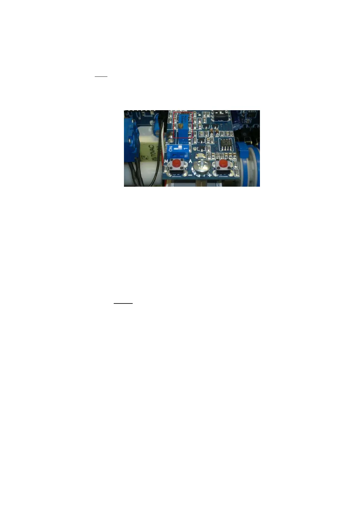 10V) and turn the trimmer screw (as shown in the picture) clockwise, the