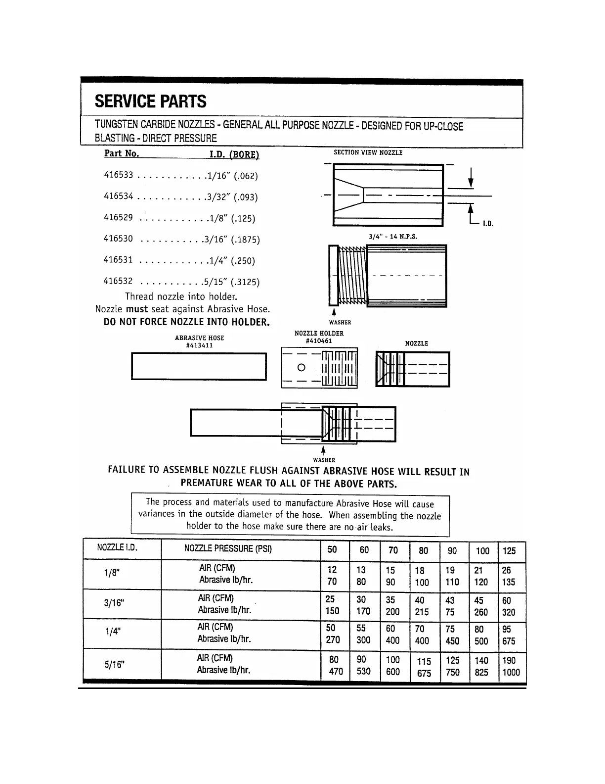 Econoline 36-1 DP - Service Parts List; Tungsten Carbide Nozzles
