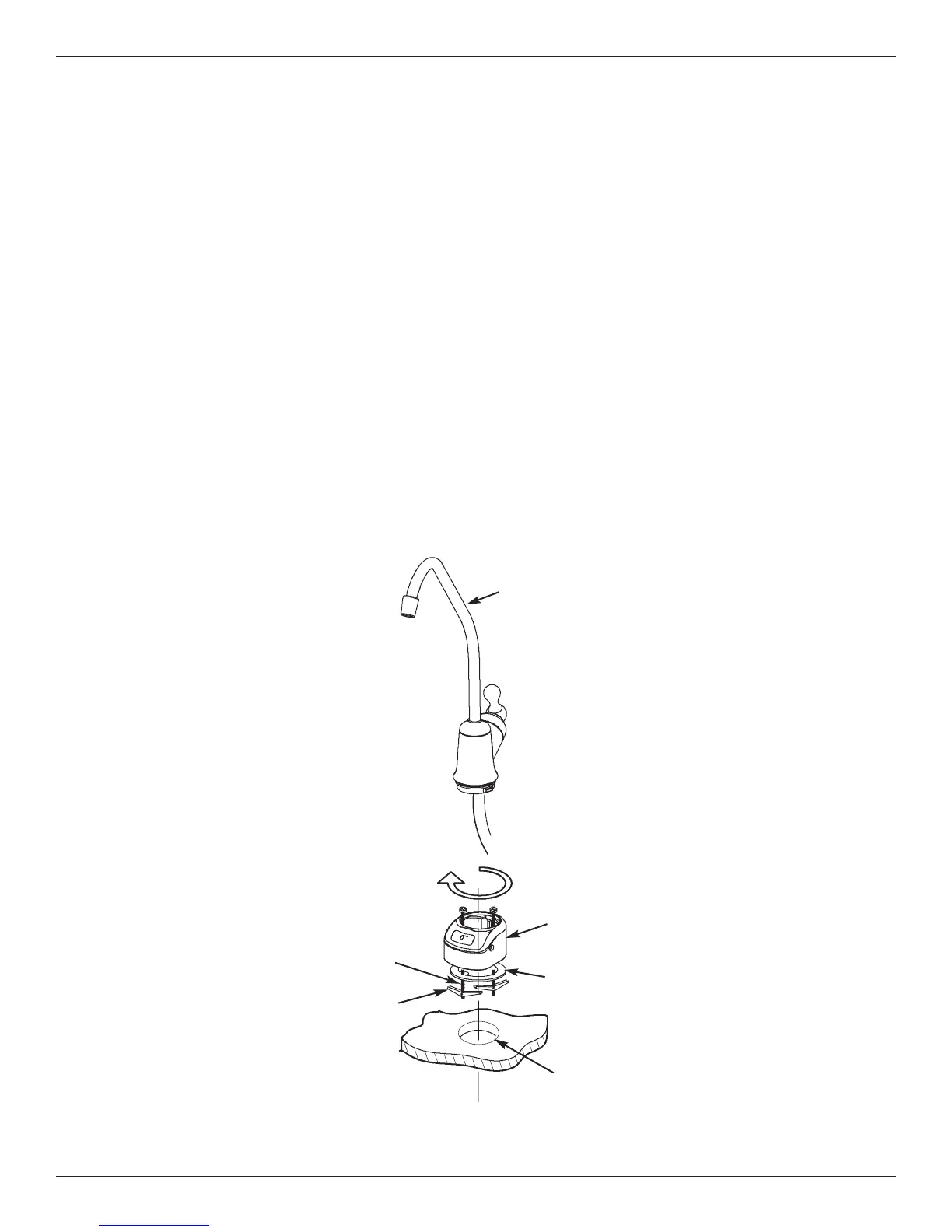 2. Move the faucet down onto the base. Turn 1/4 clockwise to attach the faucet to the base.