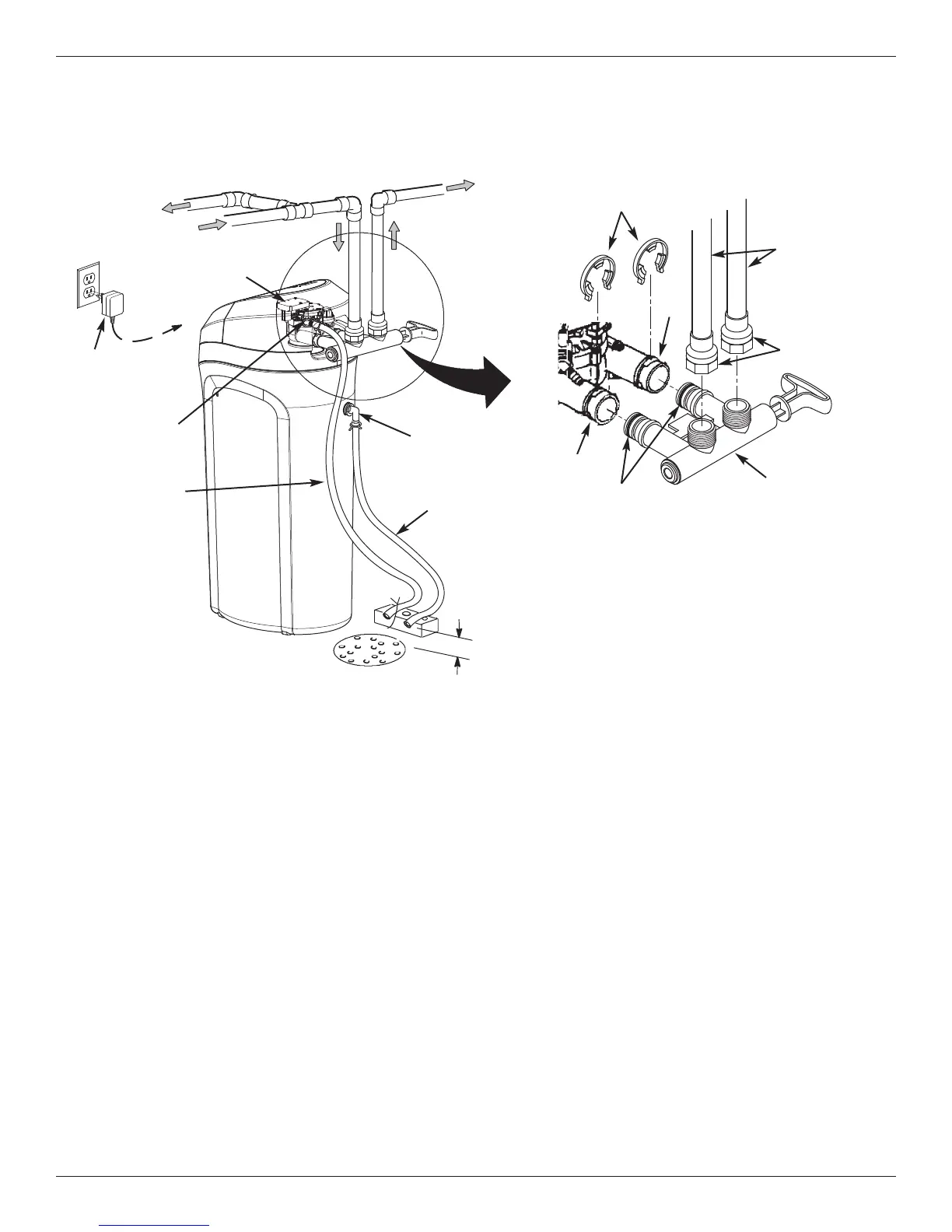 3. Install the brine tank overflow grommet and elbow