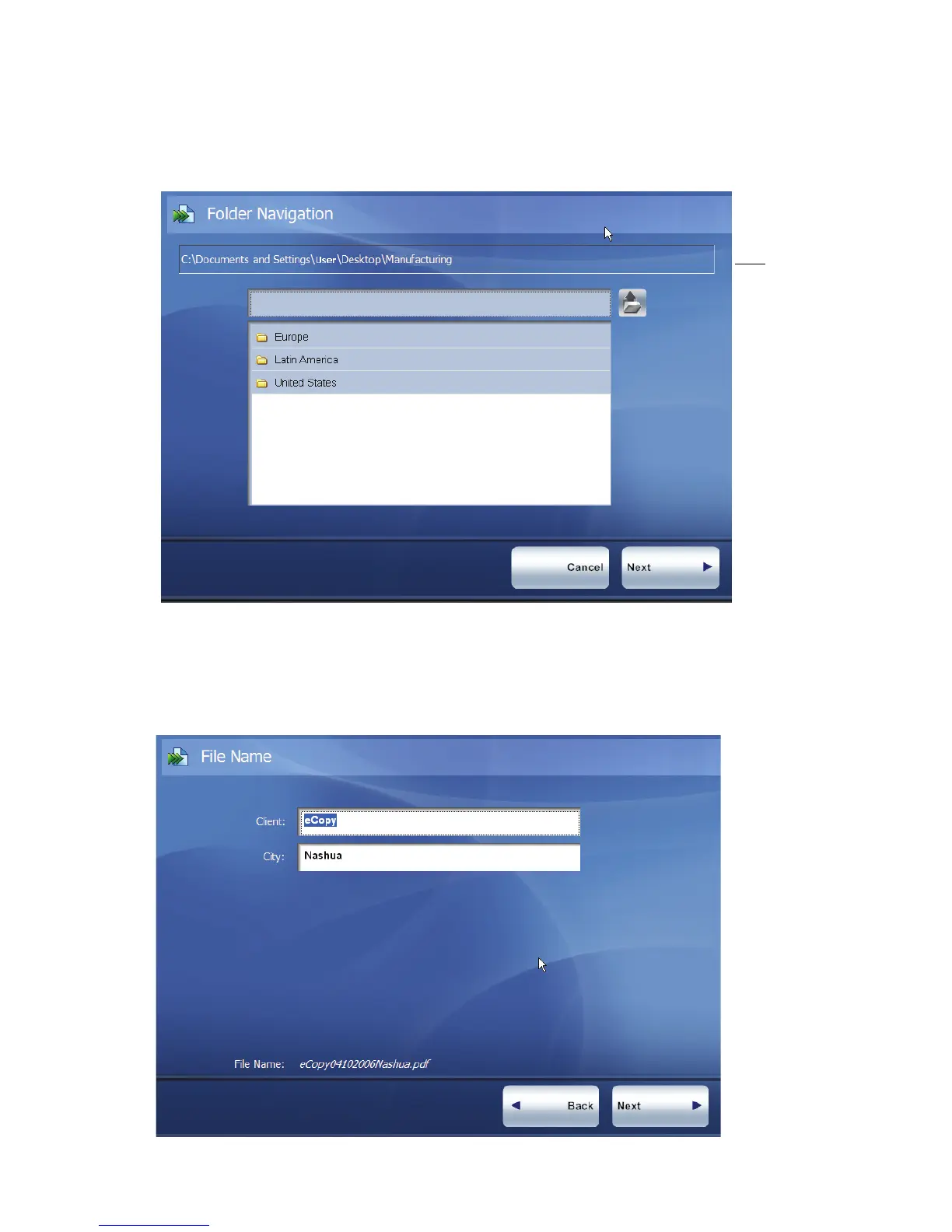 9 If the Folder Navigation screen appears, select the target subfolder in the destination