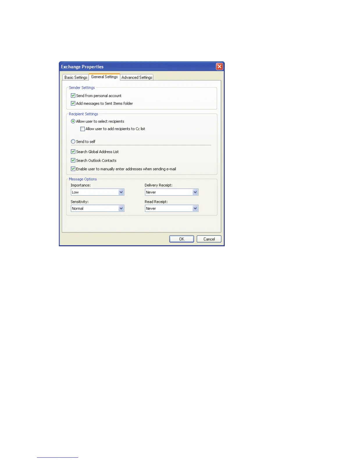 as e-mail attachments from their personal Microsoft Exchange account, clear the Send