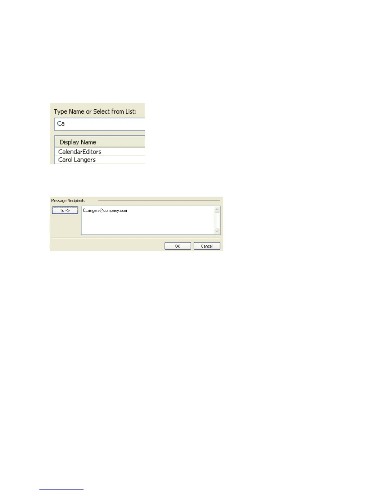 6 Select each recipient that you want to include on the To: list and then click To -> in the