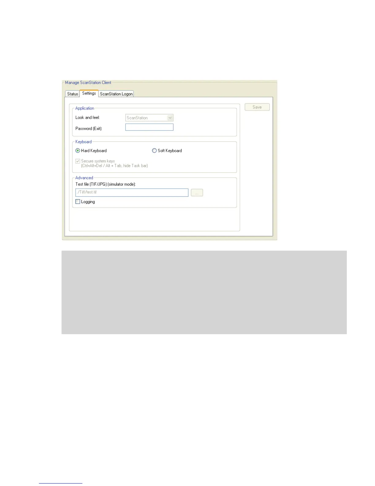 2 Select the Settings tab, enter a password in the Password (Exit) field, and then click Save.