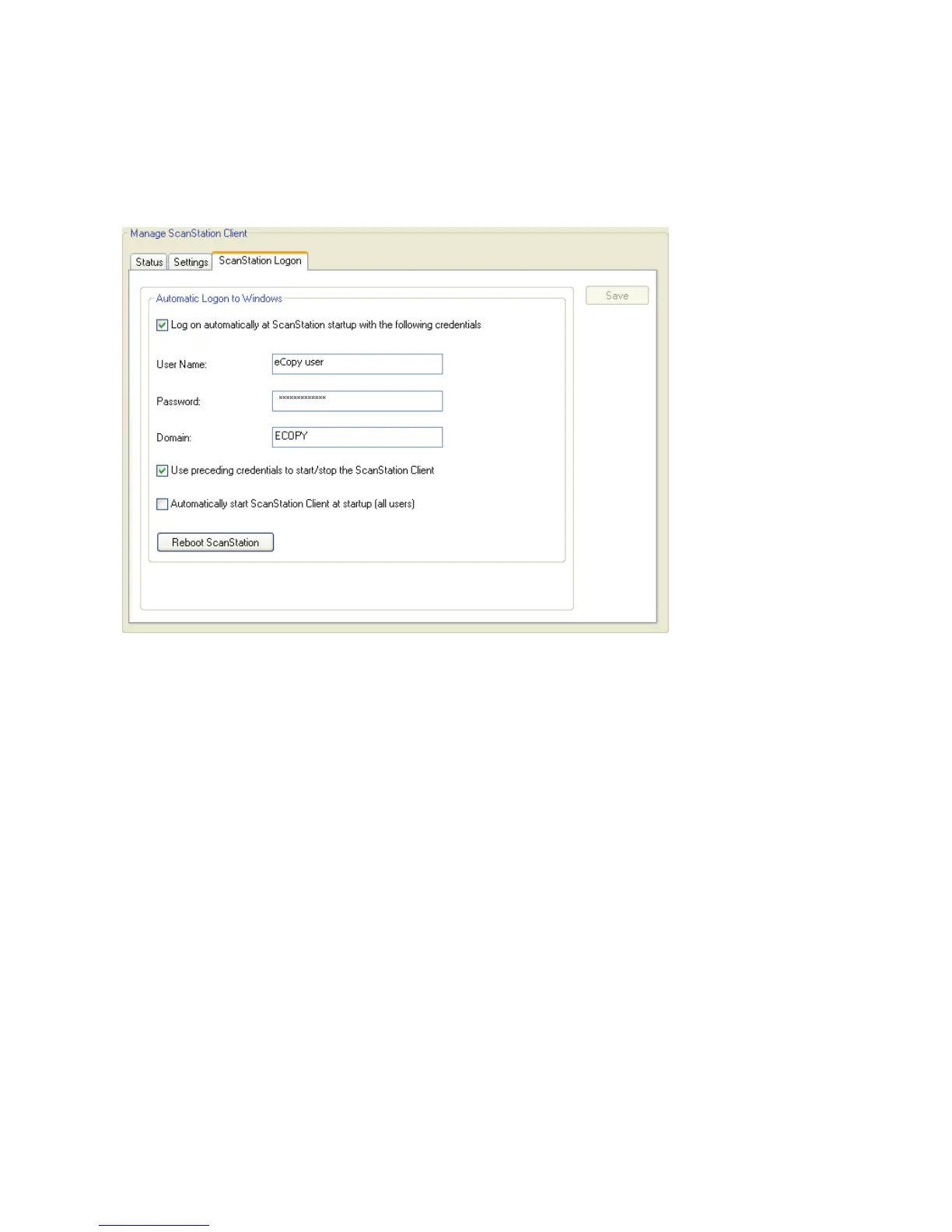 ■ Select the Use preceding credentials to start/stop the ScanStation Client check